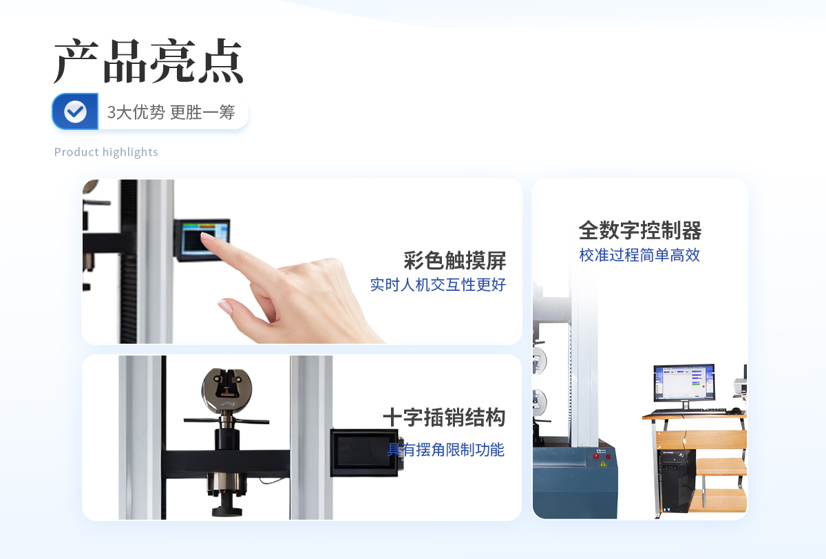 該系列萬能試驗機適用于橡膠、塑料、紡織物、防水材料、電線電纜、網(wǎng)繩、金屬絲、金屬棒、金屬板、各種金屬、非金屬及復(fù)合材料的力學(xué)性能指標的測試,如各種拉伸試驗,通過更改附具便可輕松完成壓縮、彎曲、剪切、撕裂、剝離、穿刺等試驗。7寸TFT彩色觸摸屏,直接輸入試驗參數(shù),中英文操作界面層層提示,用戶無需操作手冊即可輕松操作。本拉力試驗機具有試驗力數(shù)字顯示,試驗速度連續(xù)可調(diào),試樣拉斷自動停機,峰值保持等功能,試驗結(jié)果完全符合國家相關(guān)標準的要求。